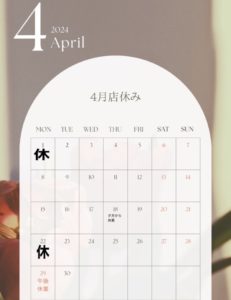 4月の店休日とクーポン